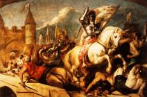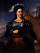 Jeanne   d'Arc (now Fr. Jeanne d'Arc; approx. 1412 - May 30, 1431) - the   national heroine of France, one of the French army commanders in the   Hundred Years War. Was captured by the Burgundians, was transferred to   the British and burned at the stake as a Heretic. Subsequently   rehabilitated and ranked as the Catholic Church canonized.