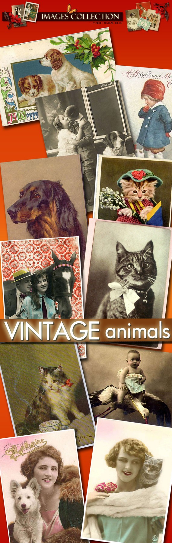Collection of digital images 780 vintage animals -Part.1- cat dog horse for your cards labels jewellery decoupage photo greeting / C115In this page you will find: