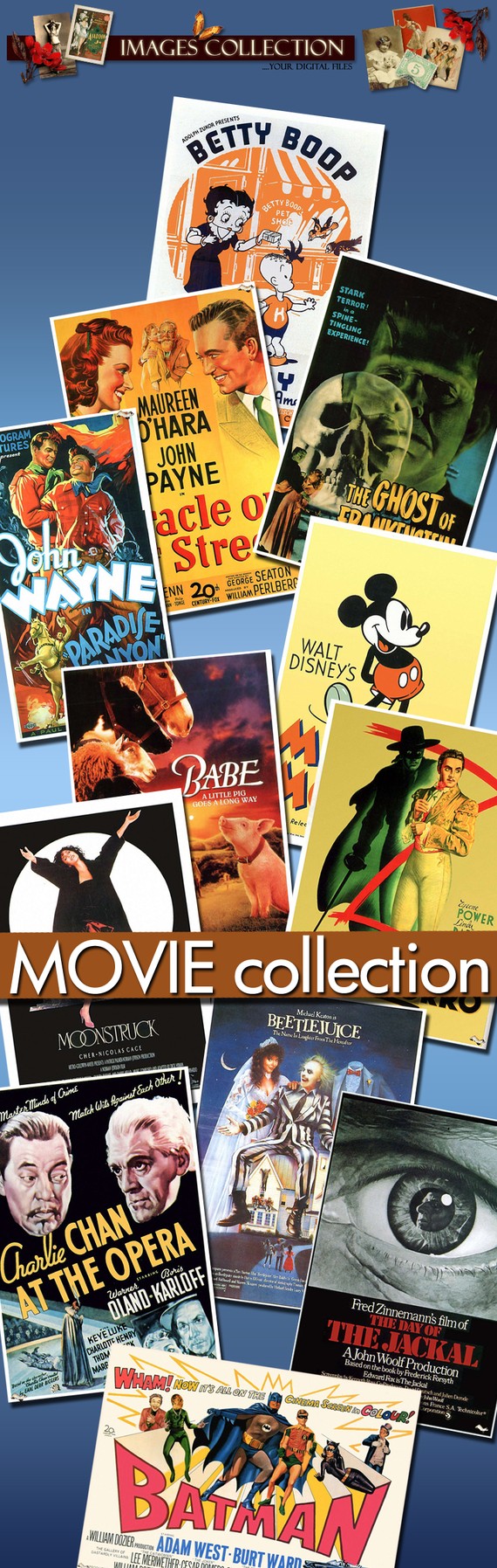 Digital collection images Movie Posters -Part.3- 700 Jpeg files scrap cards labels art cinema actors actresses vintage film posters / C123In this page you will find: