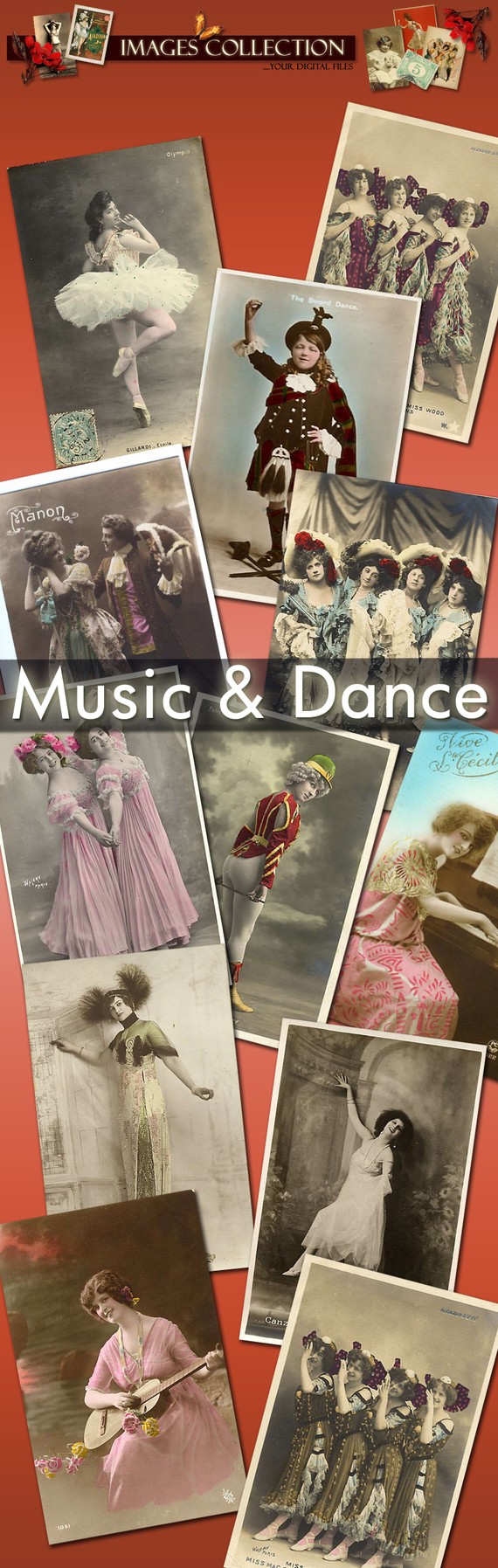 Digital images collection Music And Dance 95 vintage photos cards labels decoupage lady vintage lady romantic 1900 ephemera paris / C135In this page you will find: