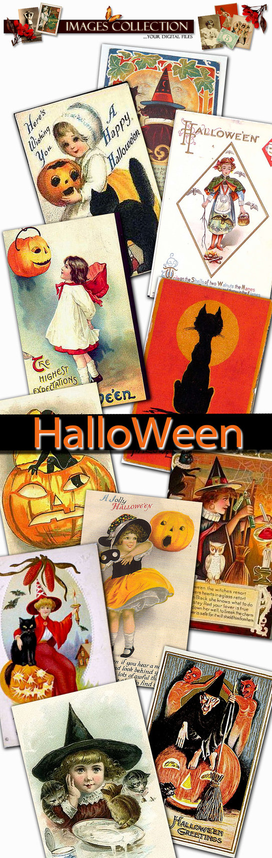 Digital images Vintage Halloween for your scrap witch pumpkin black cat spooky cards ephemera postcard holidays large Images / C151In this page you will find: