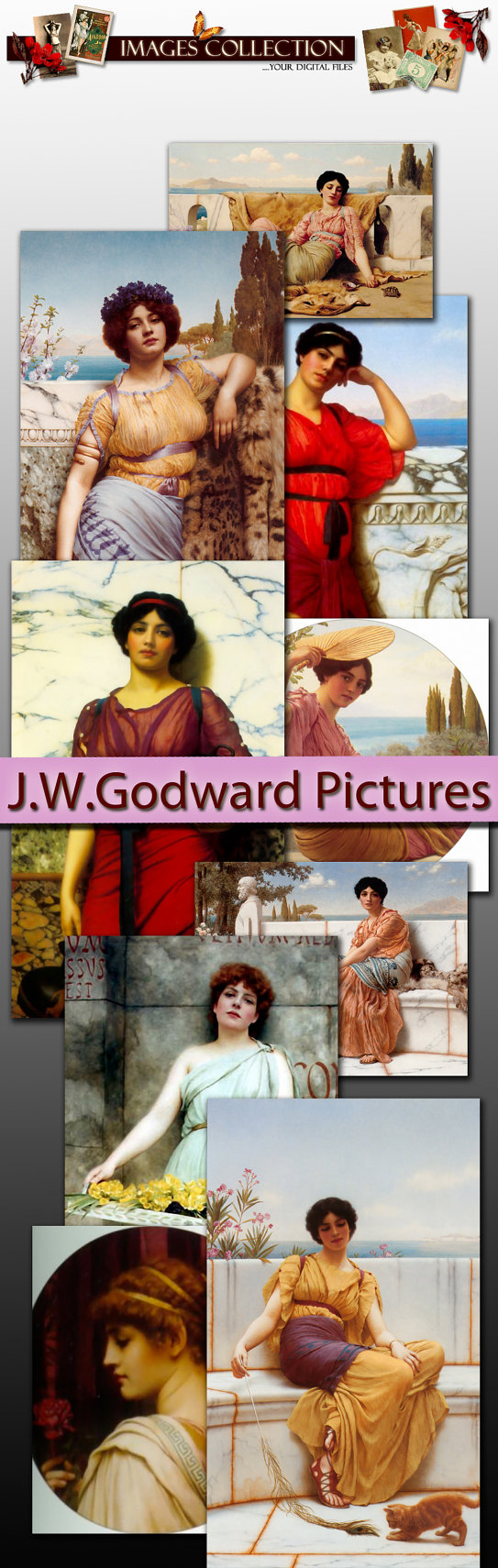 Digital collection Pictures of J.W.Godward - Pre-Raphaelite Neo-Classicist era art 1900 painting decorative artist original jpeg file / C166In this page you will find: